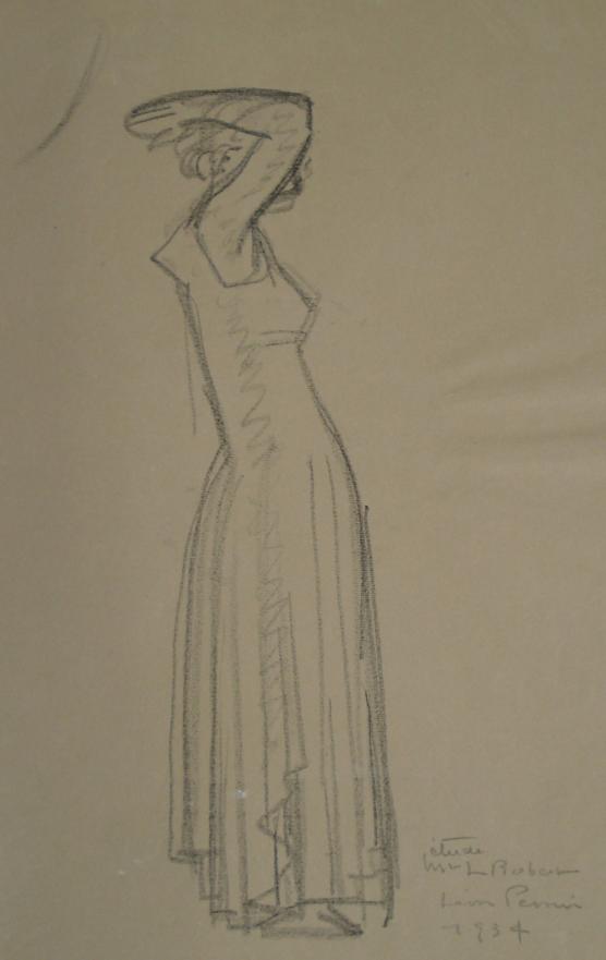 Jeanne Perrin (1884-1976), mine de plomb, aquarelle et gouache - 1927