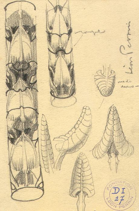 Croquis et études décoratives de bourgeon, mine de plomb, non daté - 1905