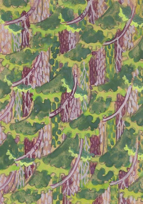 Recherche décorative à motifs de troncs de conifères, mine de plomb, gouache et aquarelle, non daté - 1905
