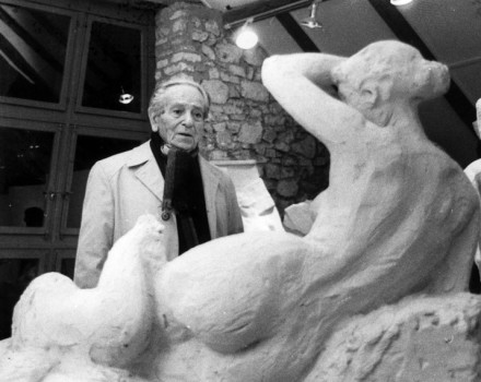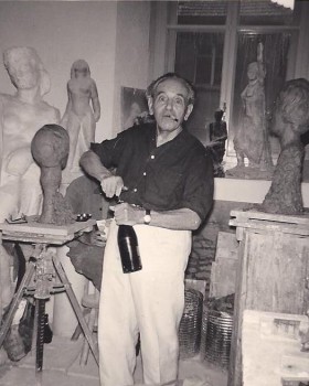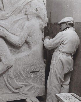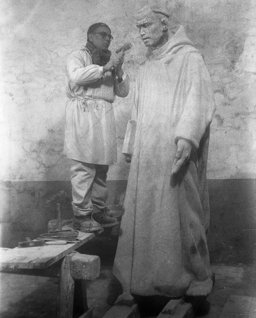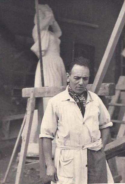 Perrin dans son atelier devant le Monument Léopold Robert – photo anonyme - 1935