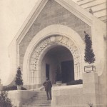 AVANTPerrin devant le porche sculpté du Crématoire (La Chaux-de-Fonds) – photo anonyme